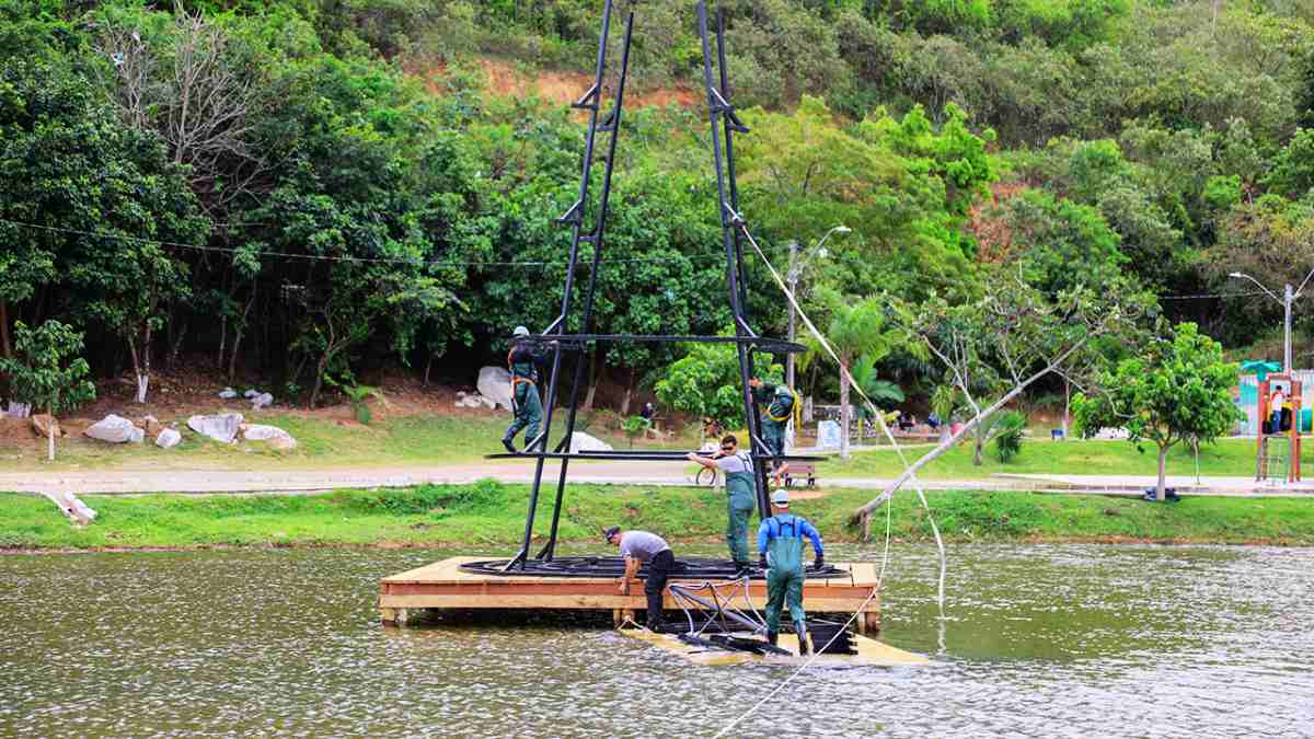 Cariacica será marcada pela magia do Natal refletida nas águas. Para isso, a Prefeitura do município já começou a montagem de dez árvores flutuantes dentro de uma lagoa, uma delas com 12,5 metros de altura e 80 mil microlâmpadas de led, no Parque O Cravo e a Rosa, em Nova Brasília.