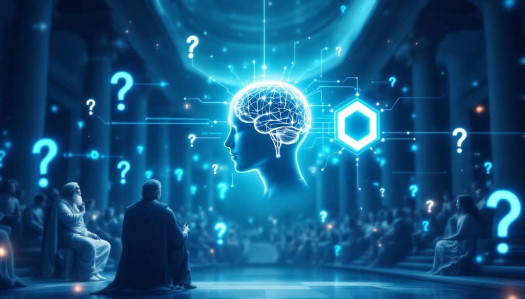 Passado e futuro podem andar juntos, assim como Sócrates desafiava seus alunos, o Google Gemini pode ser seu novo tutor pessoal e te fazer aprender através do questionamento ativo e não apenas da leitura passiva (Imagem: Renata Mendes via Gemini 3 Pro / Olhar Digital)